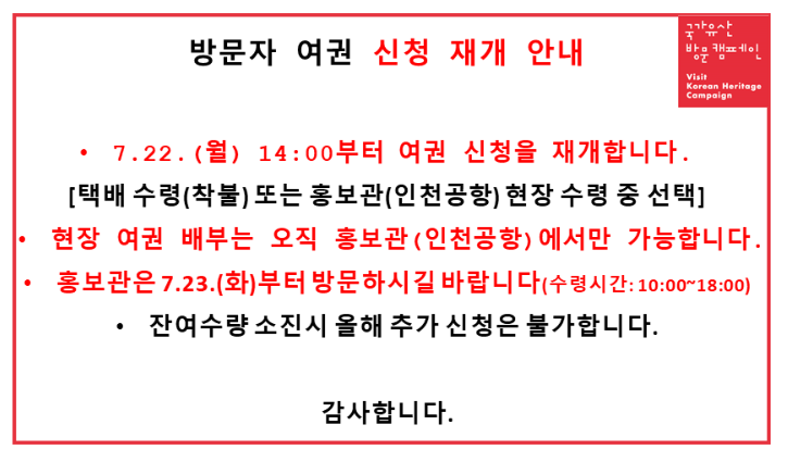 국가유산방문자여권 신청이 7월 22일부터 재개되었습니다. 여권 신청방법 기념품, 방문코스, 앱 등 자세하게 다뤄드렸으니 꼭 확인하셔서 많은 혜택 누리시기 바랍니다.