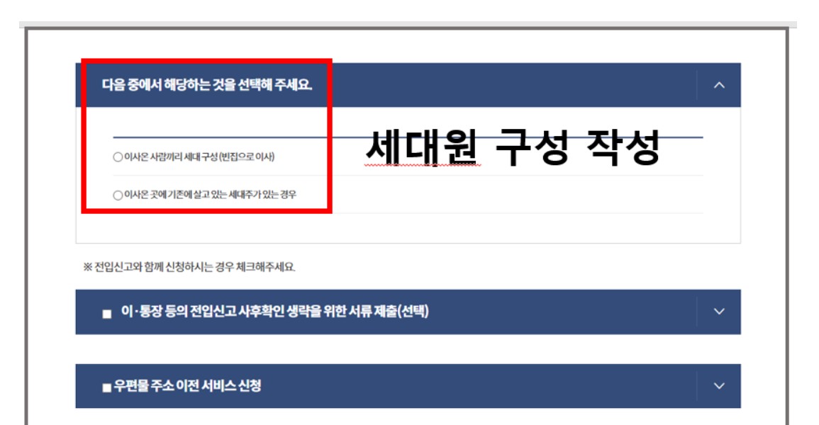 3. 전입신고 유의사항을 확인하고 나서 신청인 정보와 전입 사유를 입력합니다.