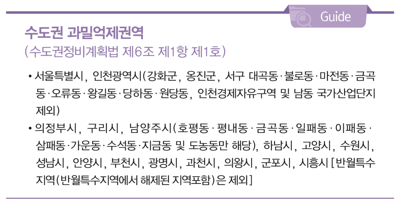 (ex) 서울특별시, 남양주시(일부해당), 인천광역시(일부해당), 구리시, 하남시, 고양시 등